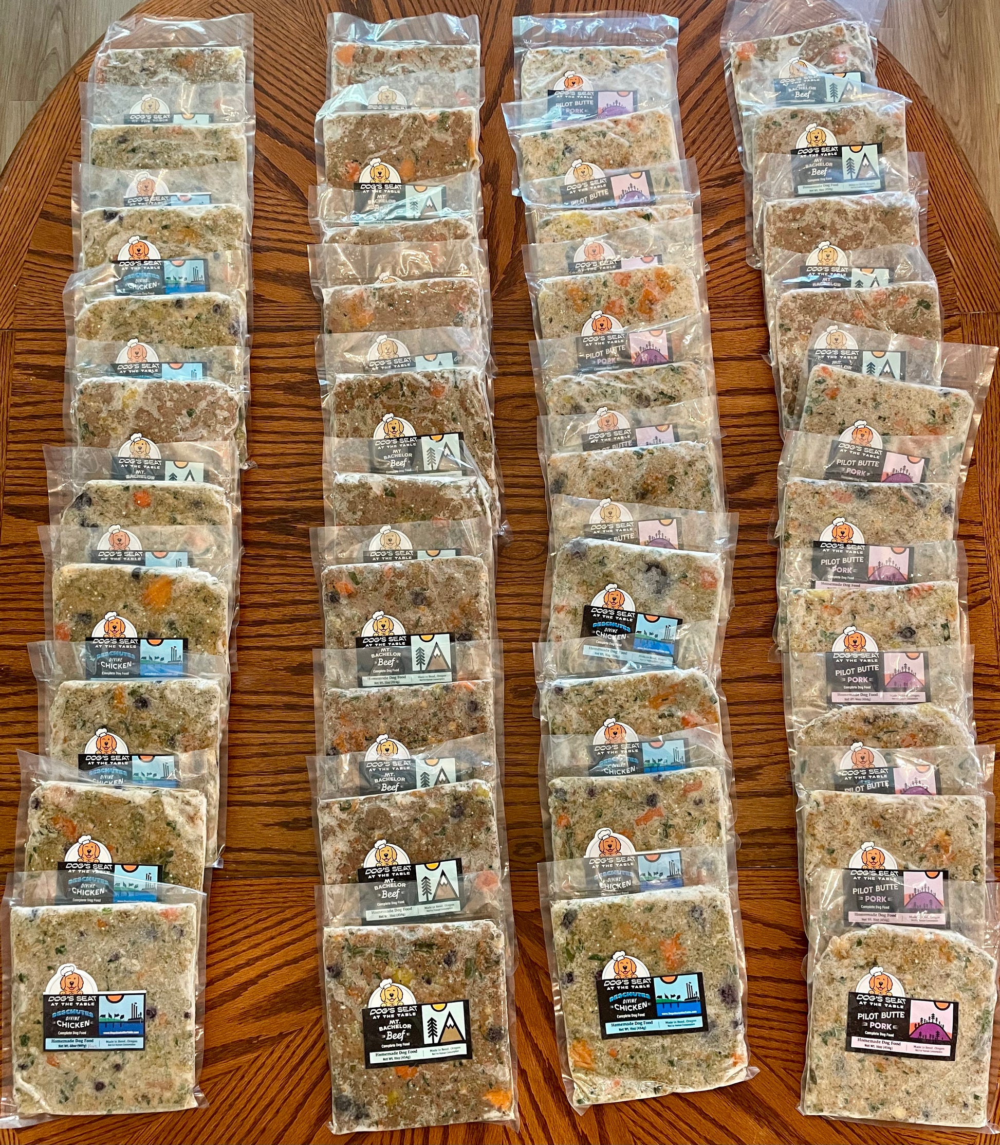 Our large box contains 40 packets of deliciously, nutritious food. It is an ideal choice for dogs that are of a large breed or if you have multiple dogs. Choose any one flavor or a combination of two flavors to fill up your box. Your pup(s) will be in dog heaven!